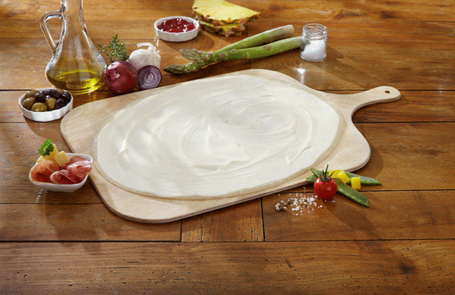 Hauchdünner Flammkuchenboden mit Schmandcreme, 230 g.